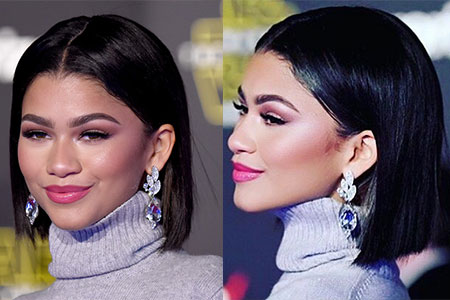 Rito Ora wore this beautiful sleek straight blunt bob during DKNY 25th Anniversary after modelling at New York Fashion Week. As for outfit, she went for a graphic printed set in monochrome patterns and a white jacket.