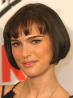 Chin-length short bob like Natalie Portman's hair style is not always suitable for round faces. If you have square face or fine hair type then try a soft or choppy bob with less hard edges. This style is mostly suitable for straight hair. Styling: 10 Min. blow-drying with round brush.